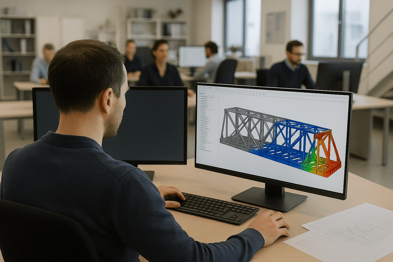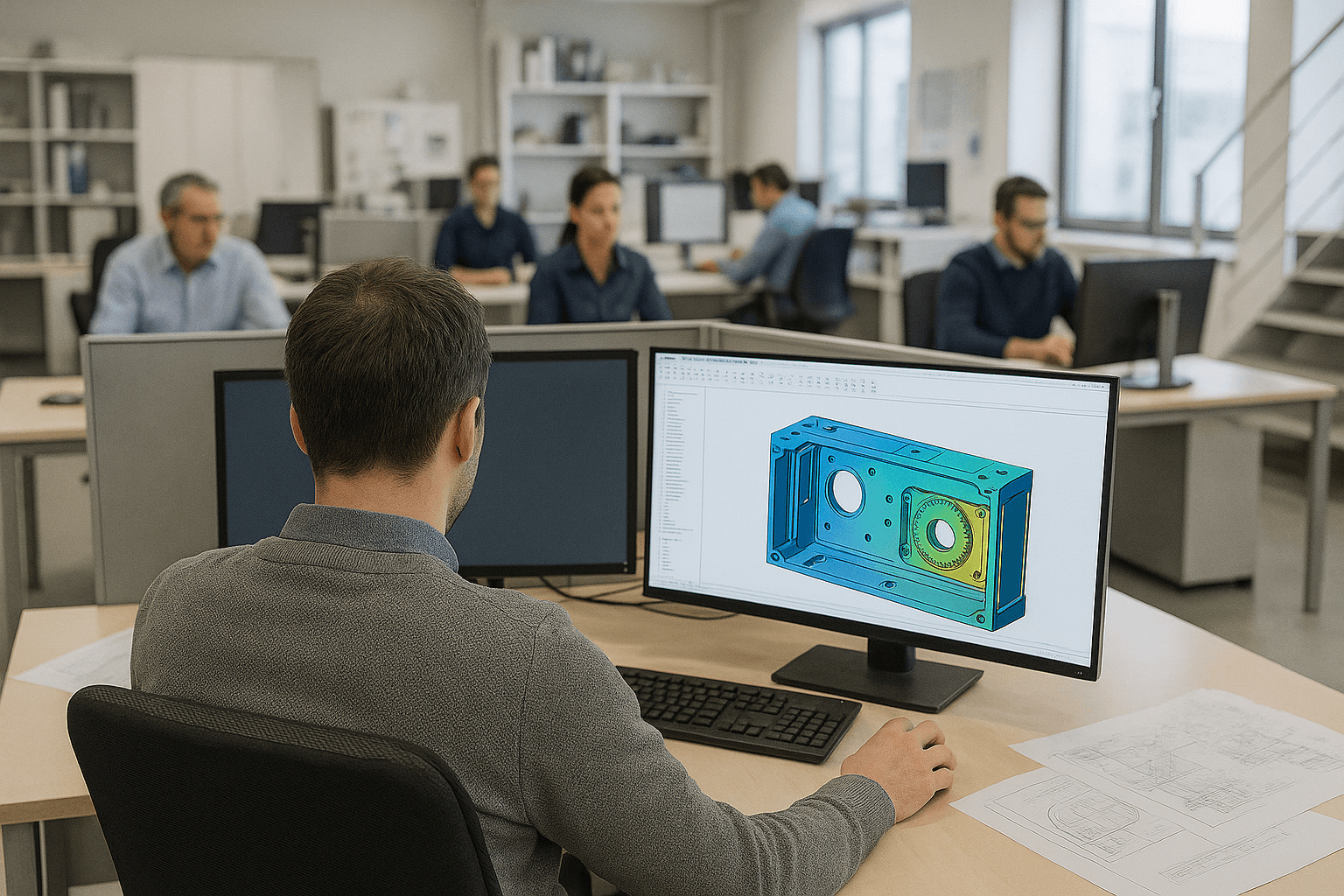 Nossa equipe é composta por engenheiros e projetistas especializados em SolidWorks, simulações FEA/CFD, padronização de processos e consultoria técnica.